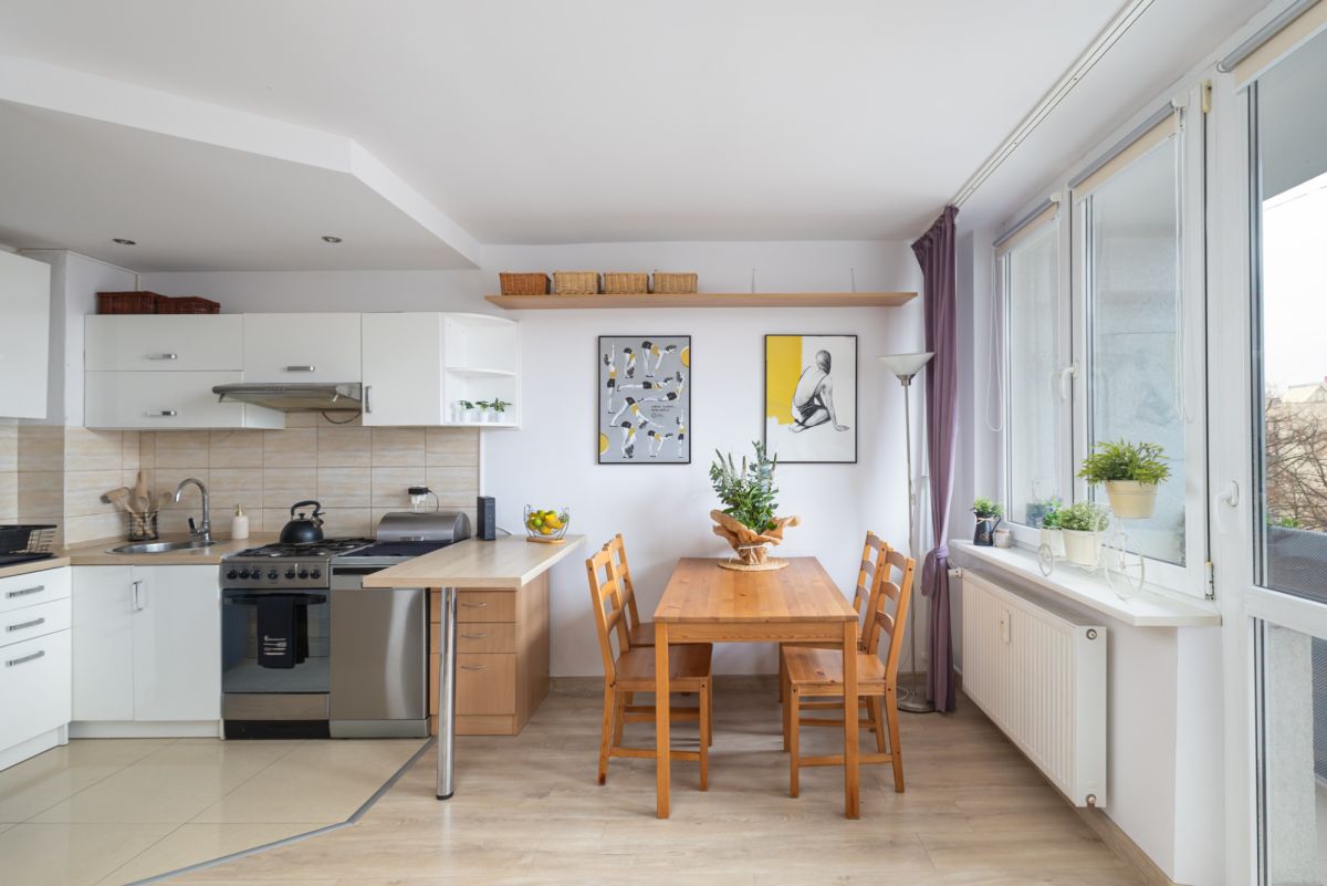Ogrzewanie miejskie, okna PCV oraz środkowe położenie mieszkania sprawiają, że zimą jest tu ciepło, a koszty ogrzewania pozostają na rozsądnym poziomie.