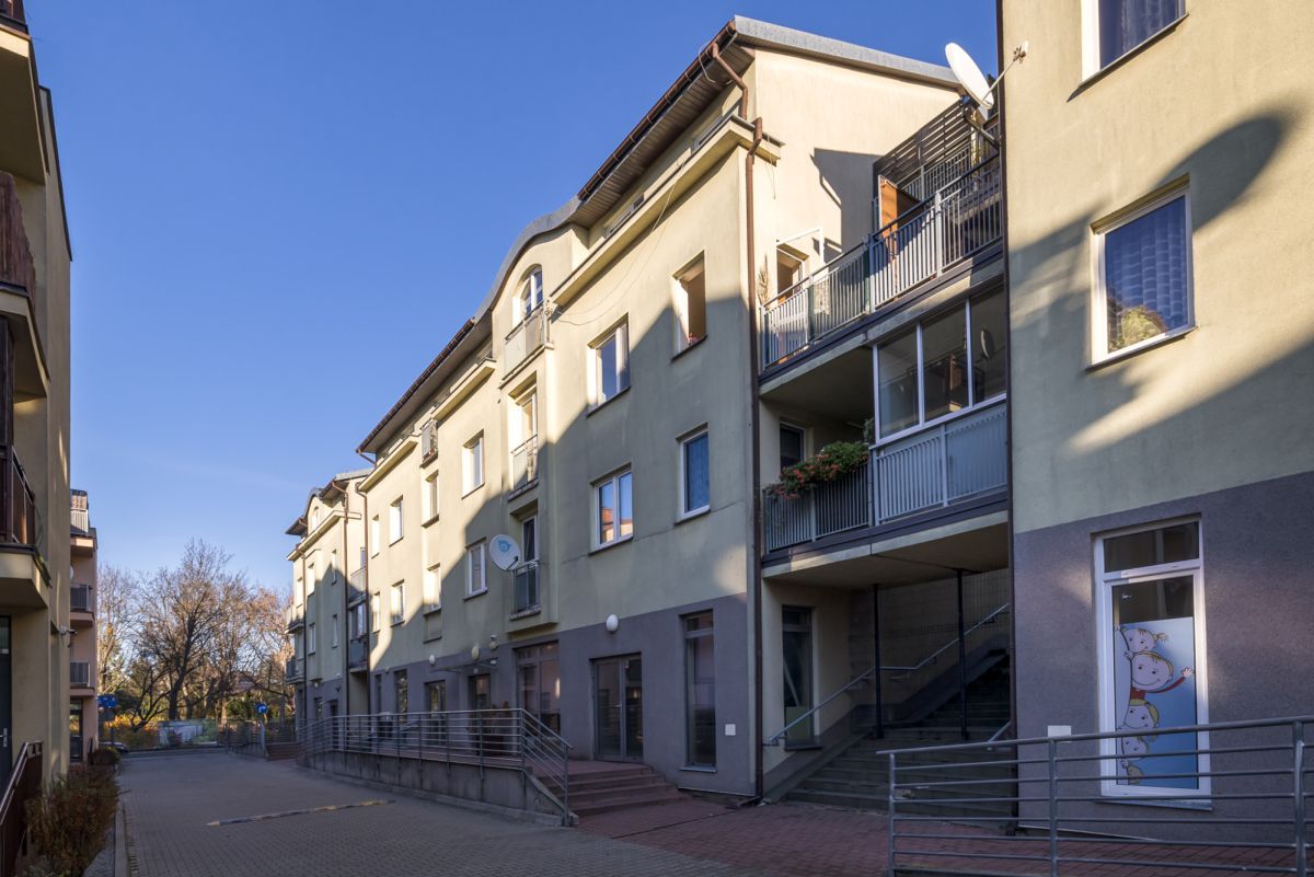Lokal znajduje się na 2. piętrze 3-piętrowego budynku z 2010 roku przy ul. Zgoda w Brwinowie.