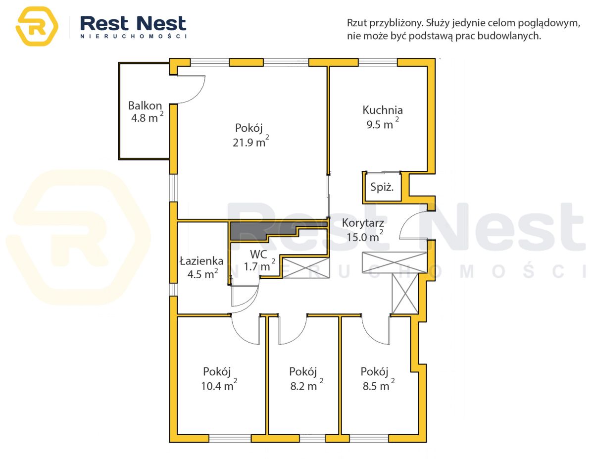 - przestronny przedpokój z szafą w zabudowie (15 m²).