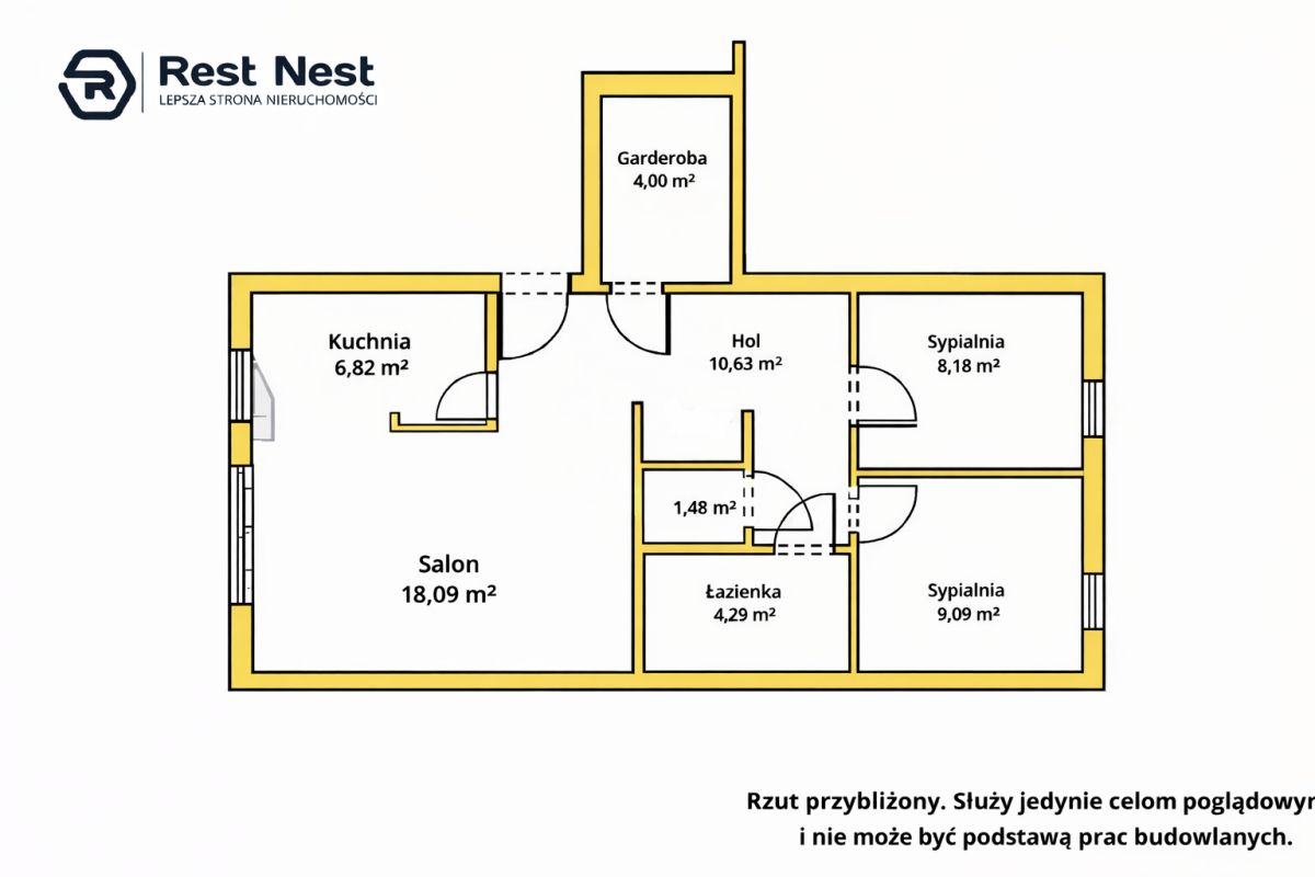 - dwie oddzielne sypialnie (9,09 m², 8,18 m²),